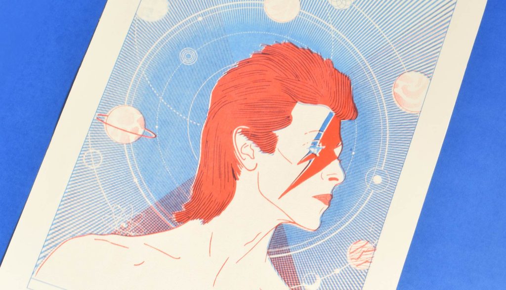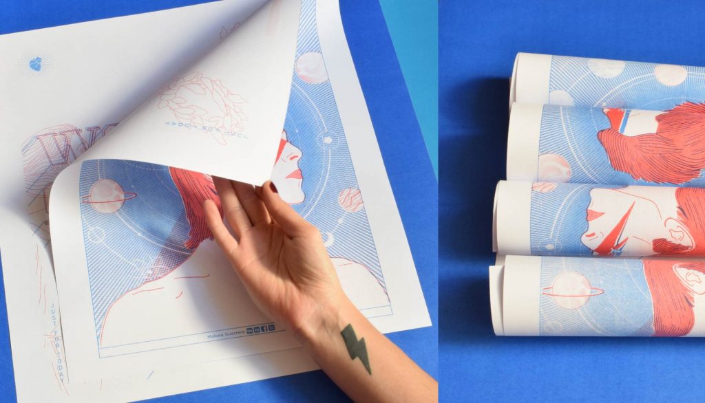 POSTER STARMANProyecto personal. Póster doble en homenaje a David Bowie, impreso en risografía a dos tintas.